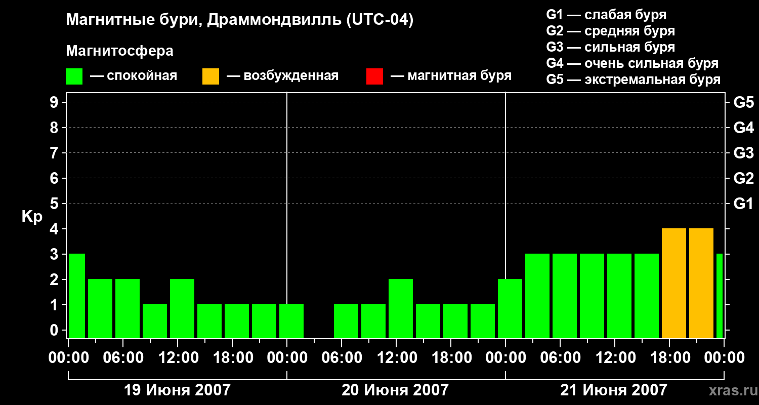 Магнитные бури в Драммондвилле 21 июня 2007 года