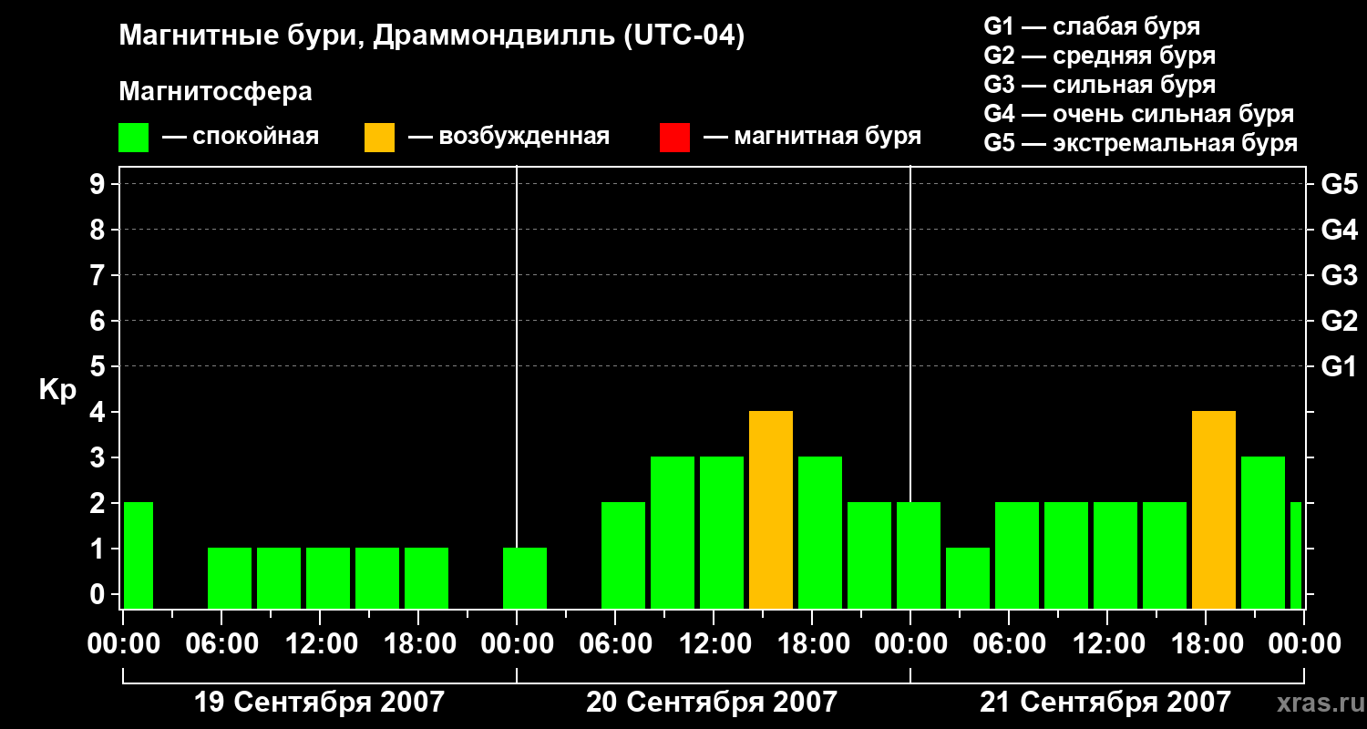 Магнитные бури в Драммондвилле 21 сентября 2007 года