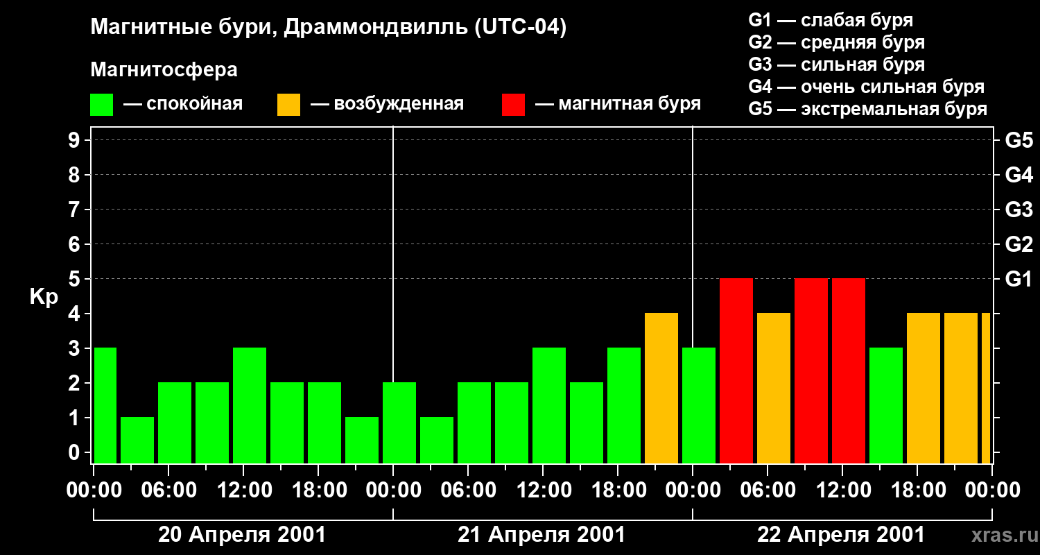 Магнитные бури в Драммондвилле 22 апреля 2001 года