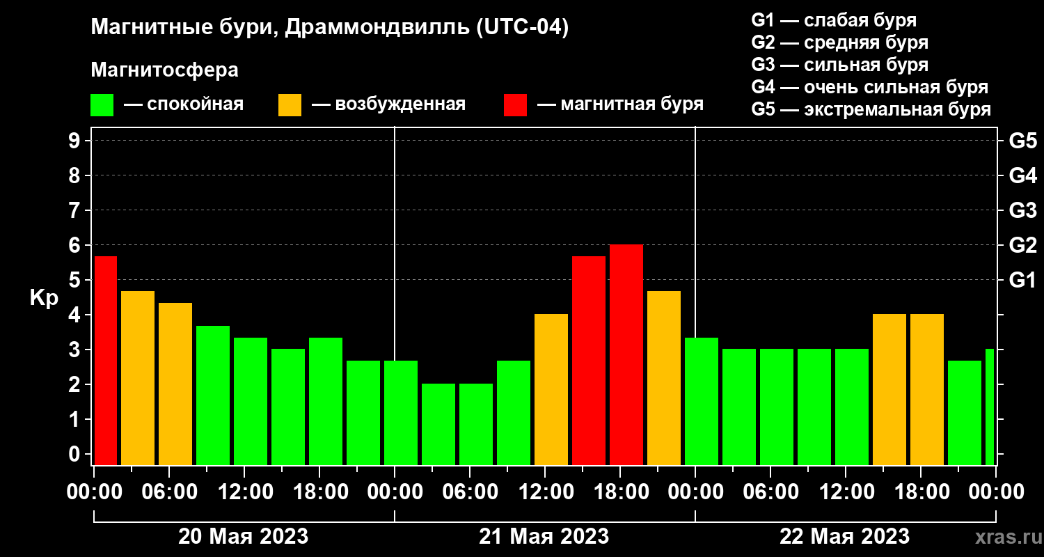 Магнитные бури в Драммондвилле 22 мая 2023 года