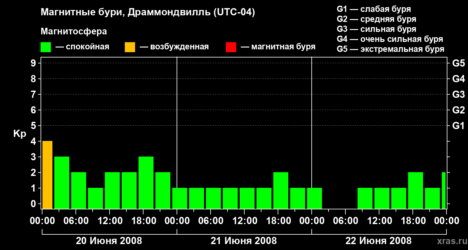 Магнитные бури в Драммондвилле 22 июня 2008 года
