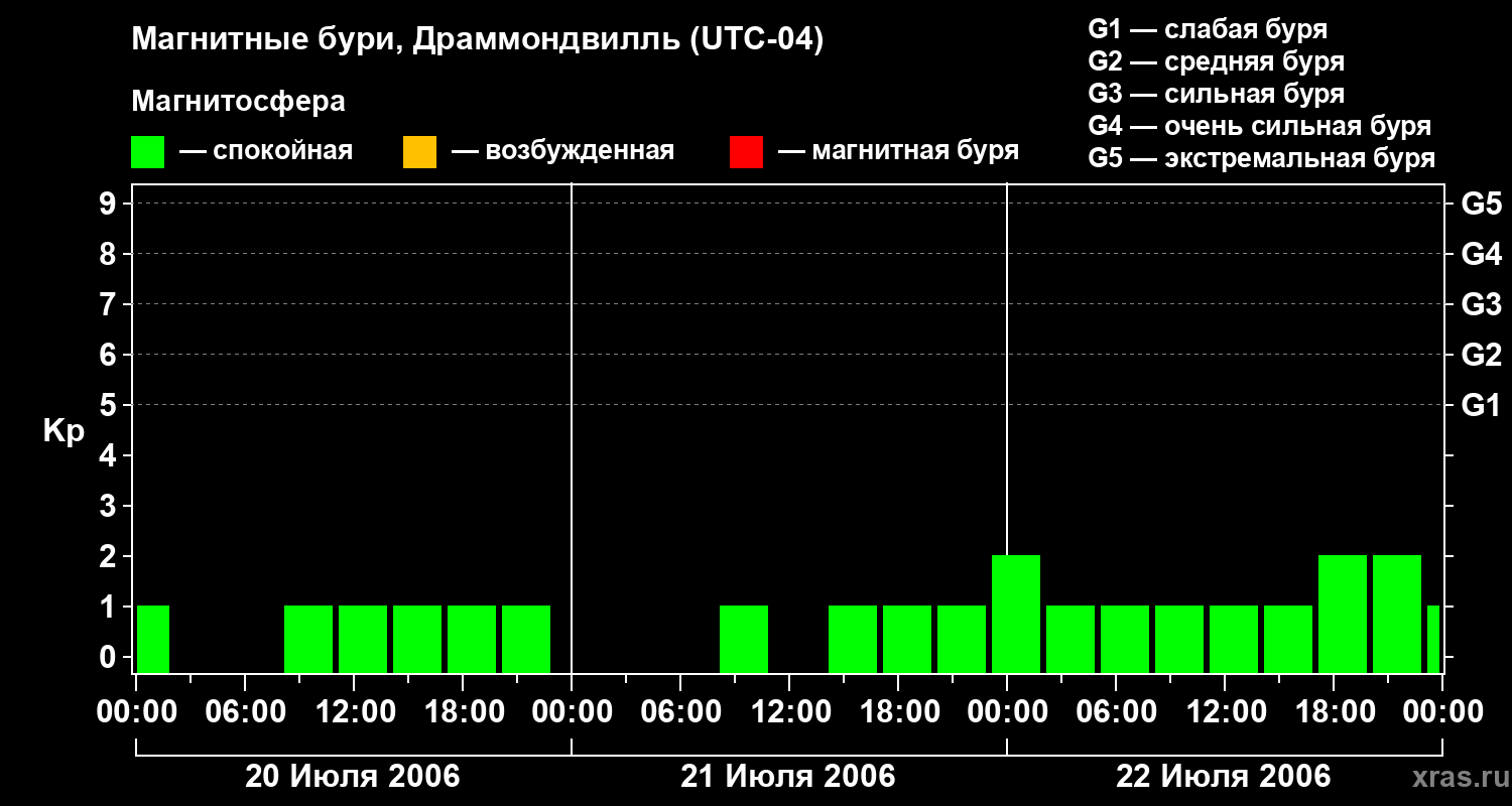 Магнитные бури в Драммондвилле 22 июля 2006 года