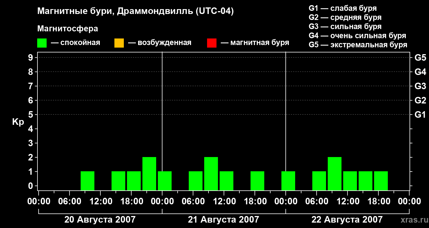 Магнитные бури в Драммондвилле 22 августа 2007 года