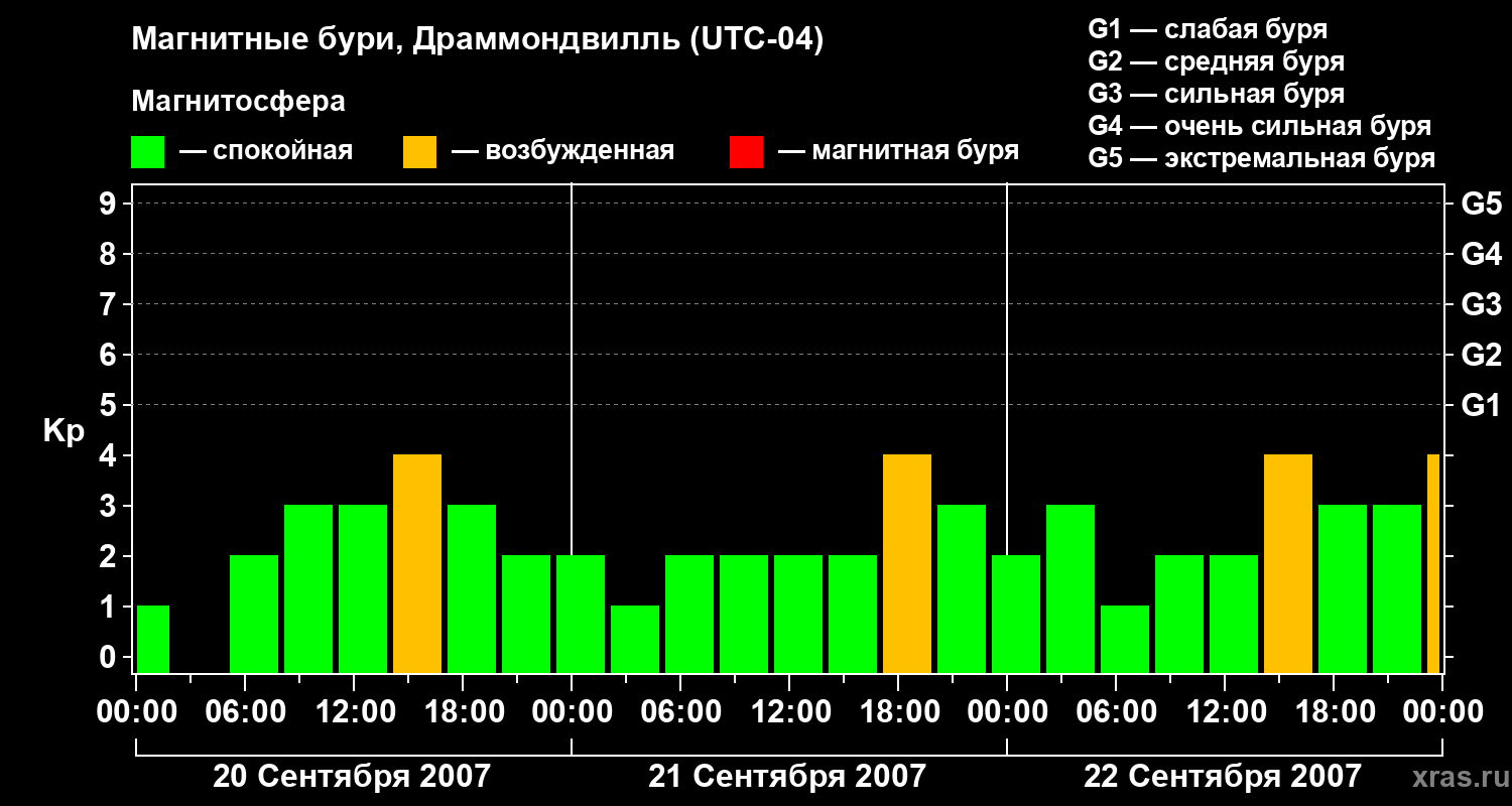 Магнитные бури в Драммондвилле 22 сентября 2007 года
