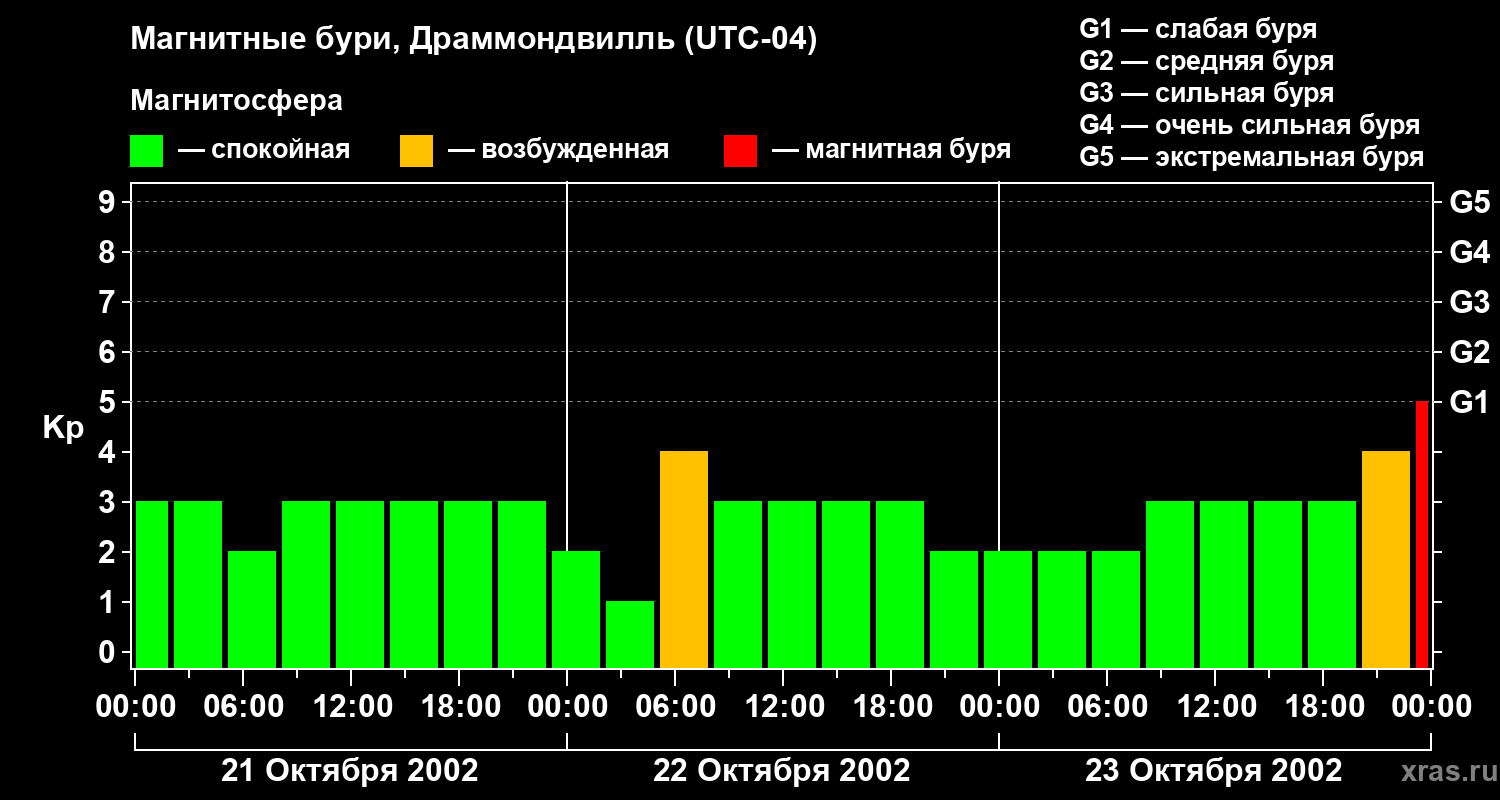 Магнитные бури в Драммондвилле 23 октября 2002 года