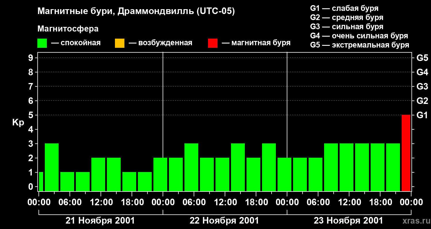 Магнитные бури в Драммондвилле 23 ноября 2001 года