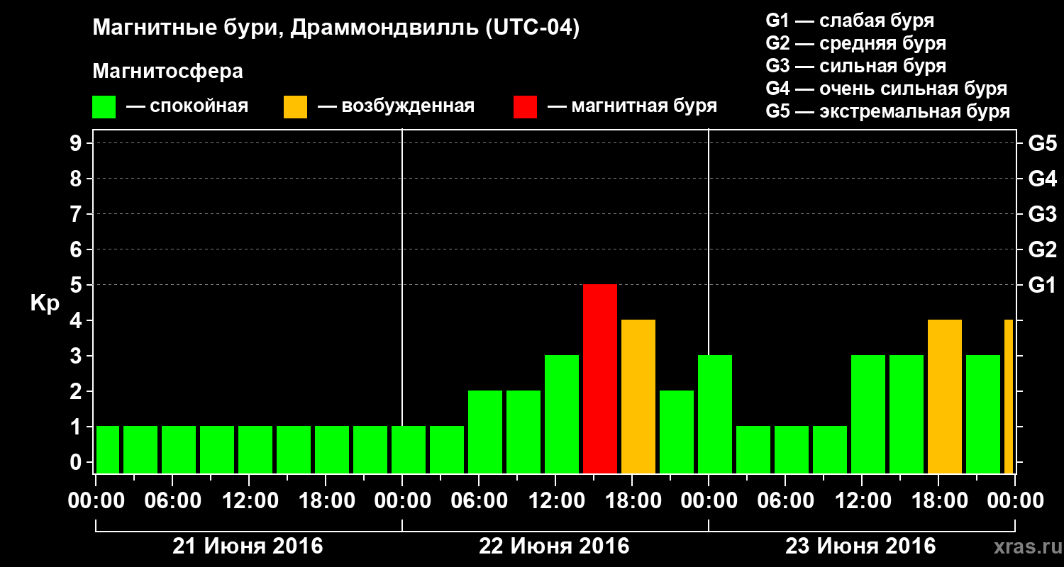 Магнитные бури в Драммондвилле 23 июня 2016 года