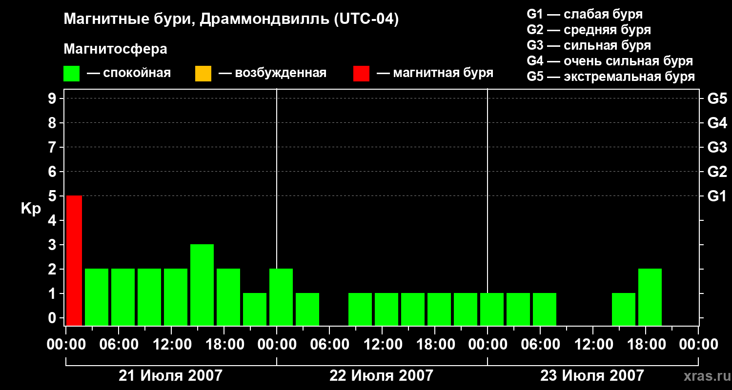 Магнитные бури в Драммондвилле 23 июля 2007 года