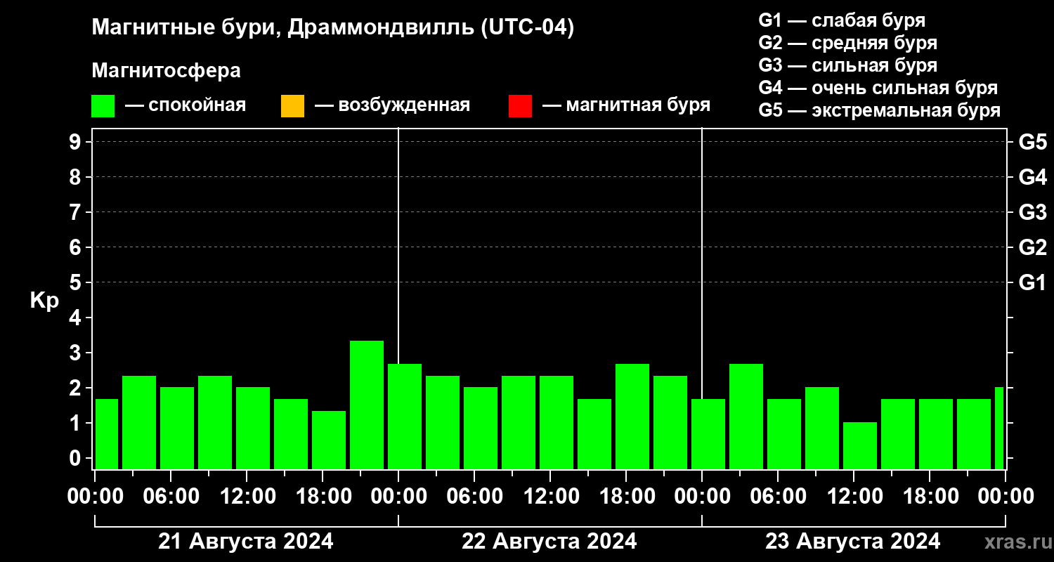 Магнитные бури в Драммондвилле — 23 августа 2024 года