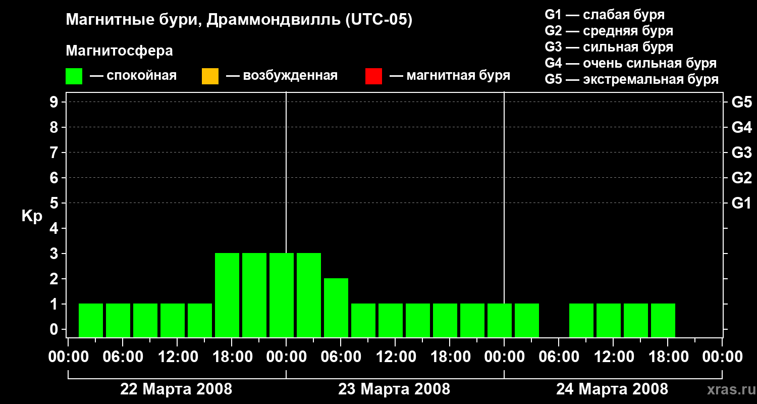 Магнитные бури в Драммондвилле 24 марта 2008 года