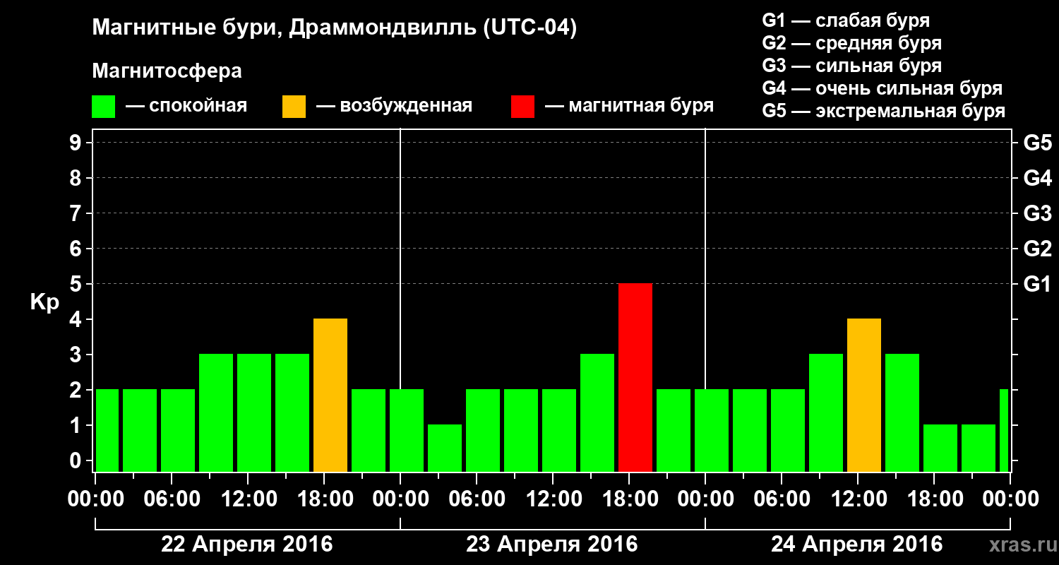 Магнитные бури в Драммондвилле 24 апреля 2016 года