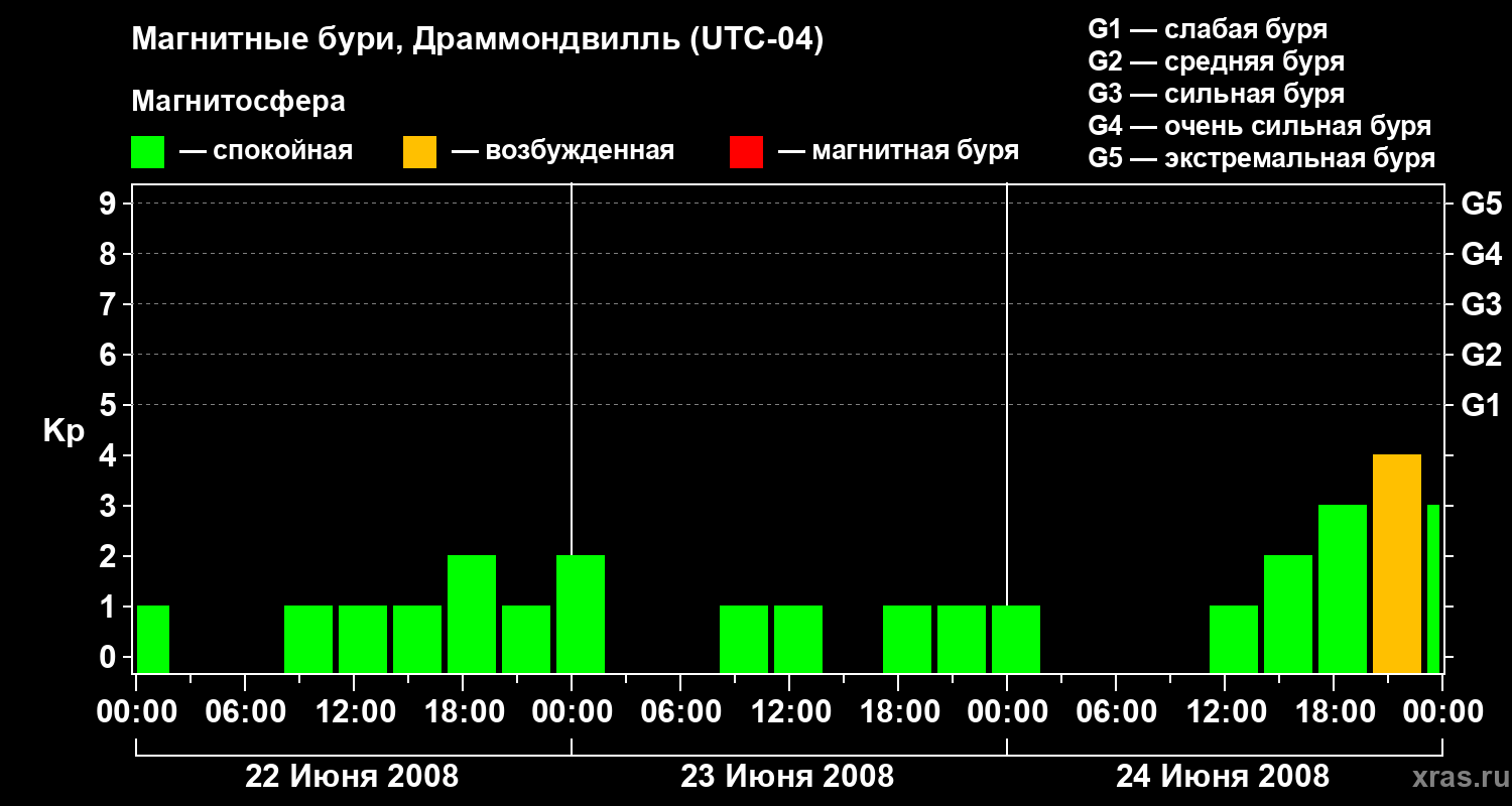 Магнитные бури в Драммондвилле 24 июня 2008 года