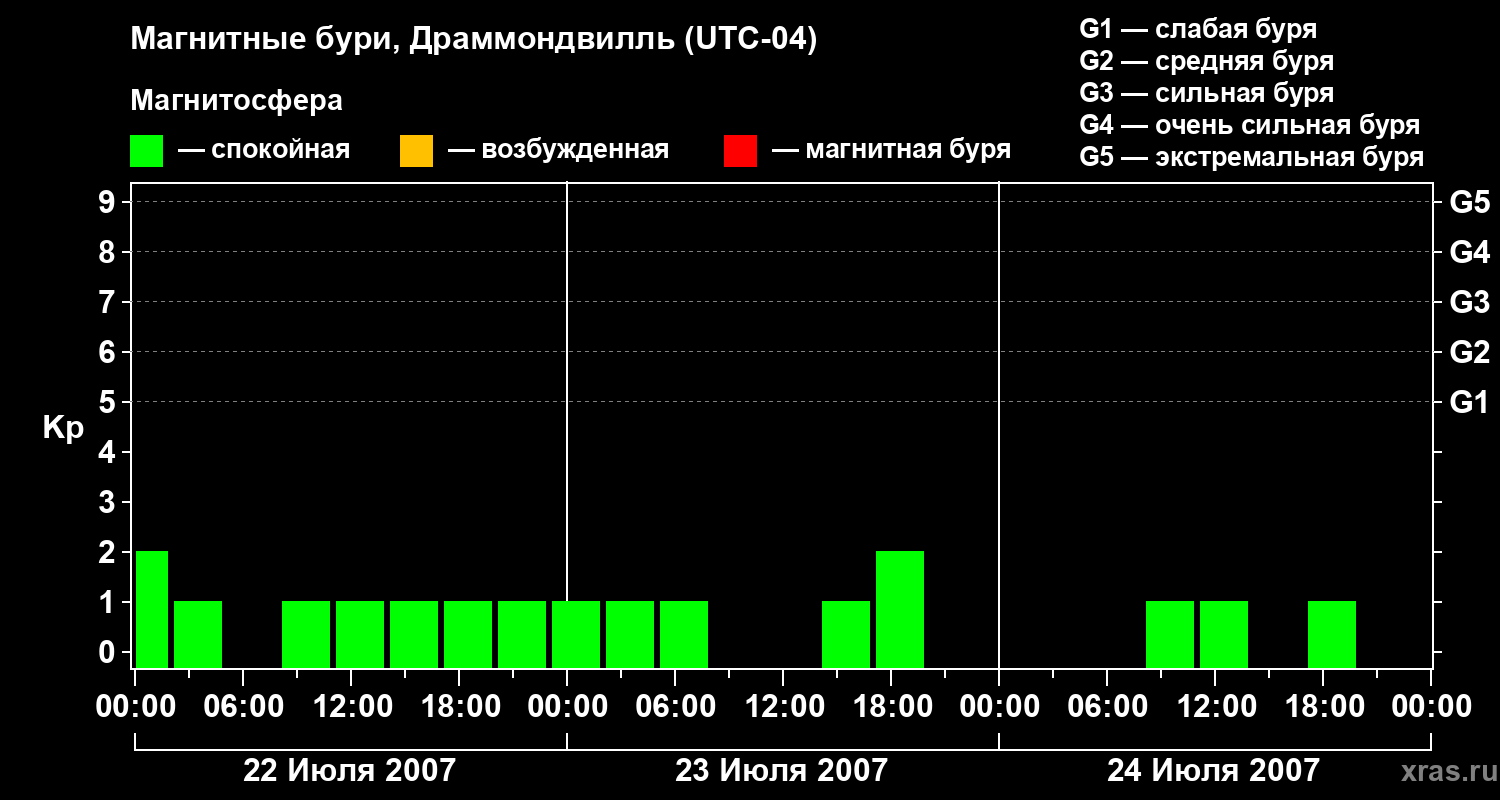 Магнитные бури в Драммондвилле 24 июля 2007 года