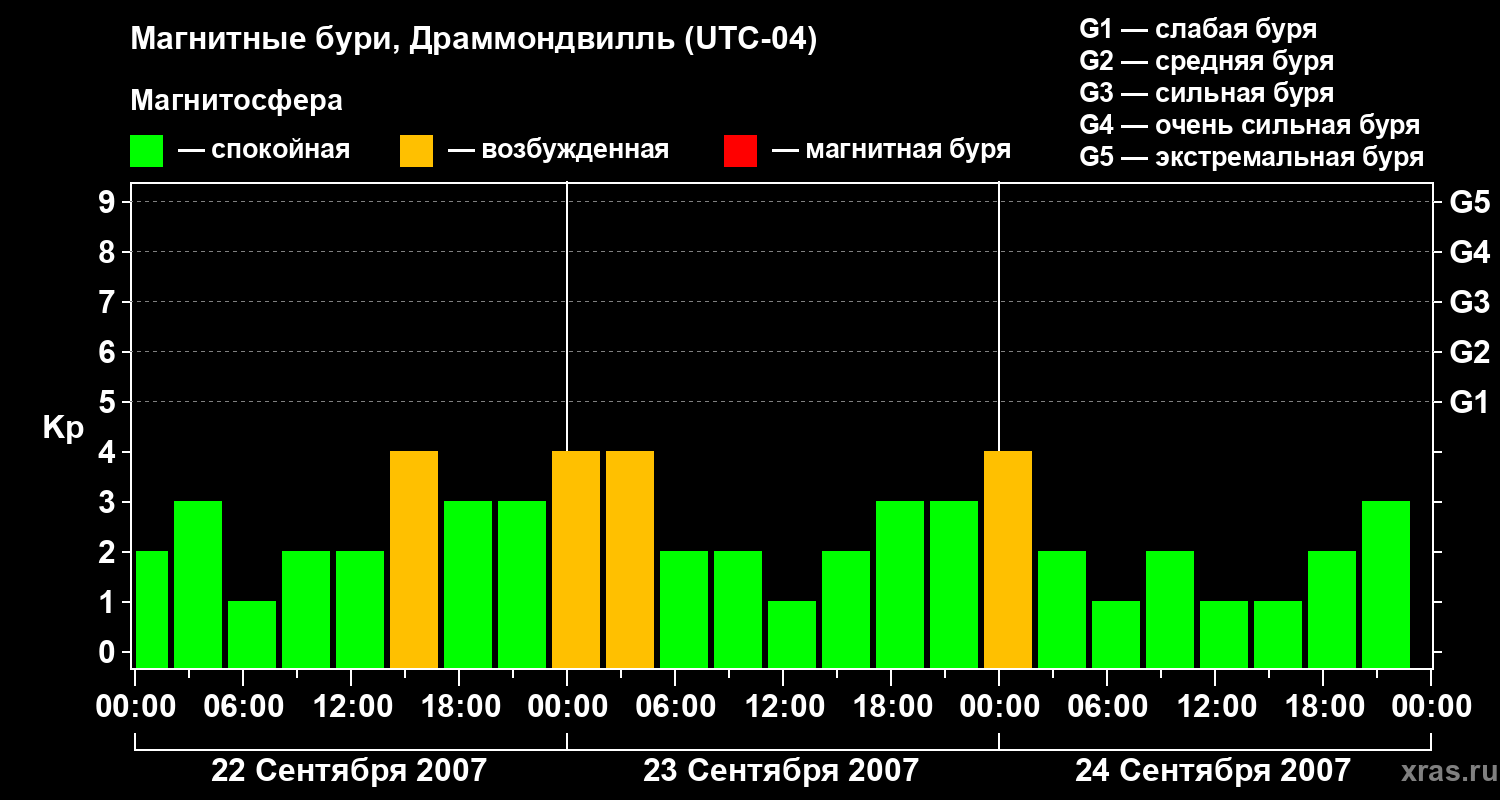 Магнитные бури в Драммондвилле 24 сентября 2007 года