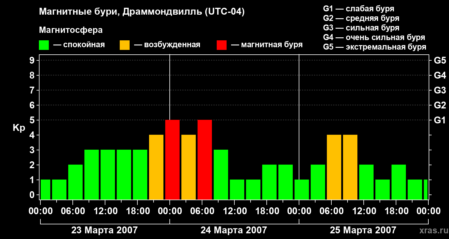 Магнитные бури в Драммондвилле 25 марта 2007 года