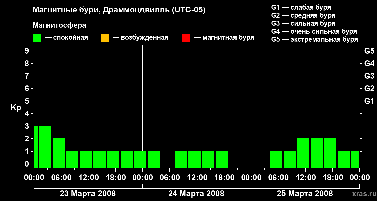 Магнитные бури в Драммондвилле 25 марта 2008 года