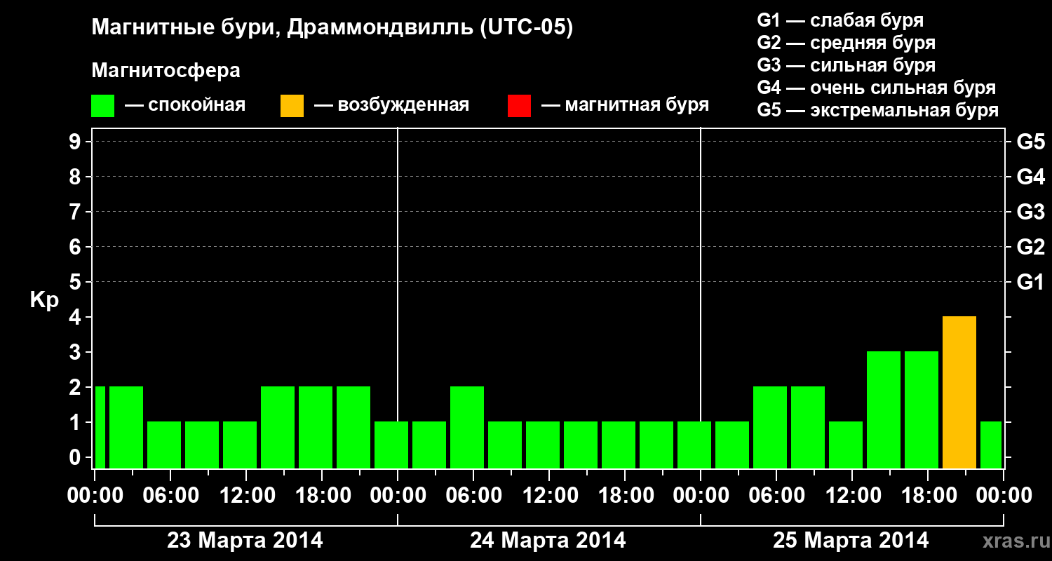 Магнитные бури в Драммондвилле 25 марта 2014 года