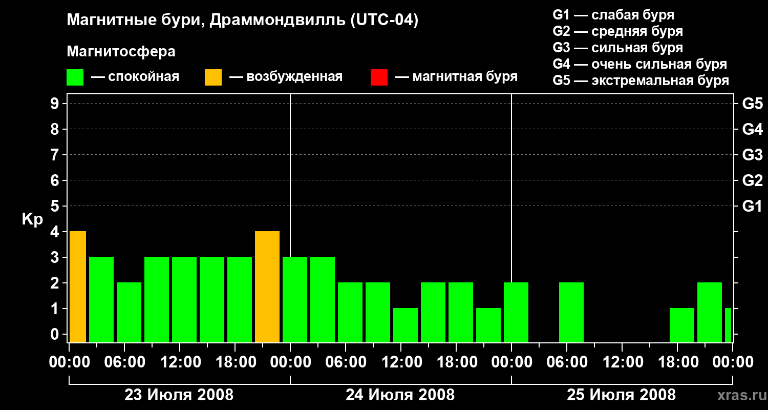 Магнитные бури в Драммондвилле 25 июля 2008 года