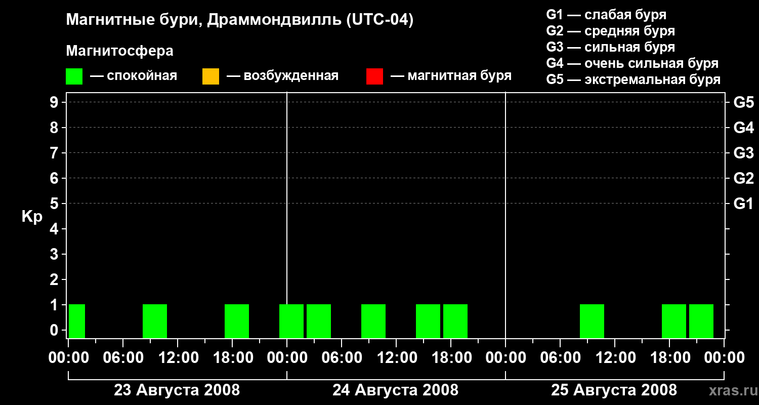 Магнитные бури в Драммондвилле 25 августа 2008 года