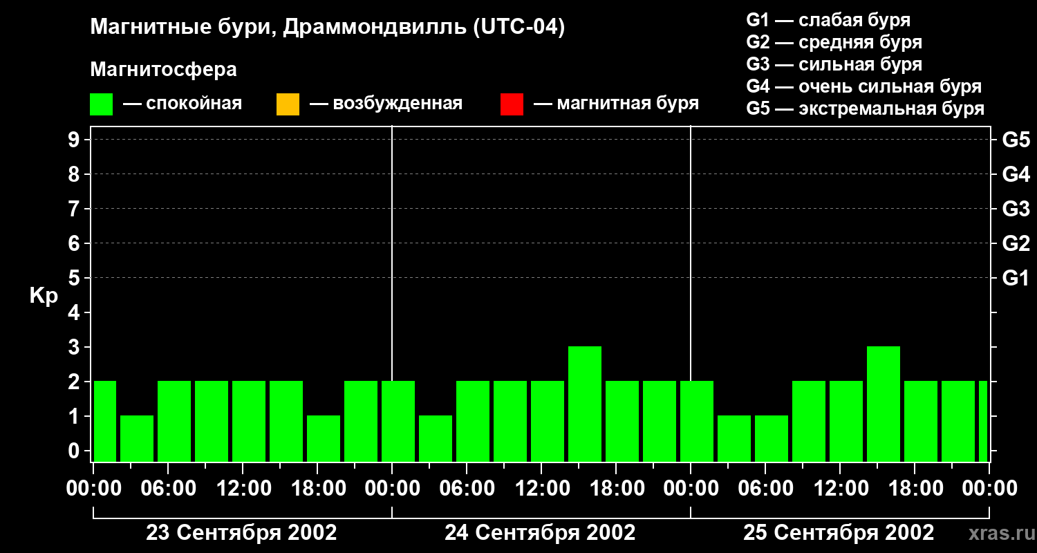 Магнитные бури в Драммондвилле 25 сентября 2002 года
