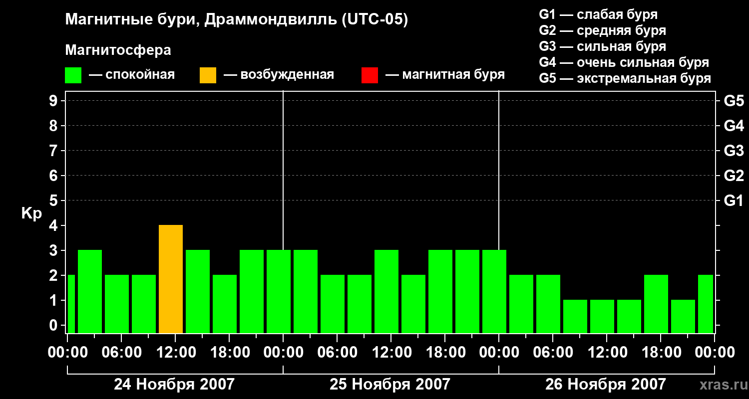 Магнитные бури в Драммондвилле 26 ноября 2007 года