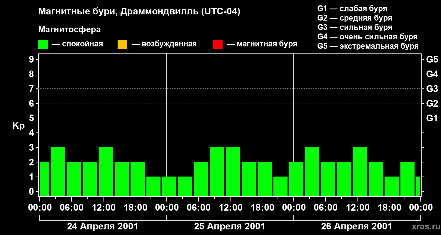 Магнитные бури в Драммондвилле 26 апреля 2001 года