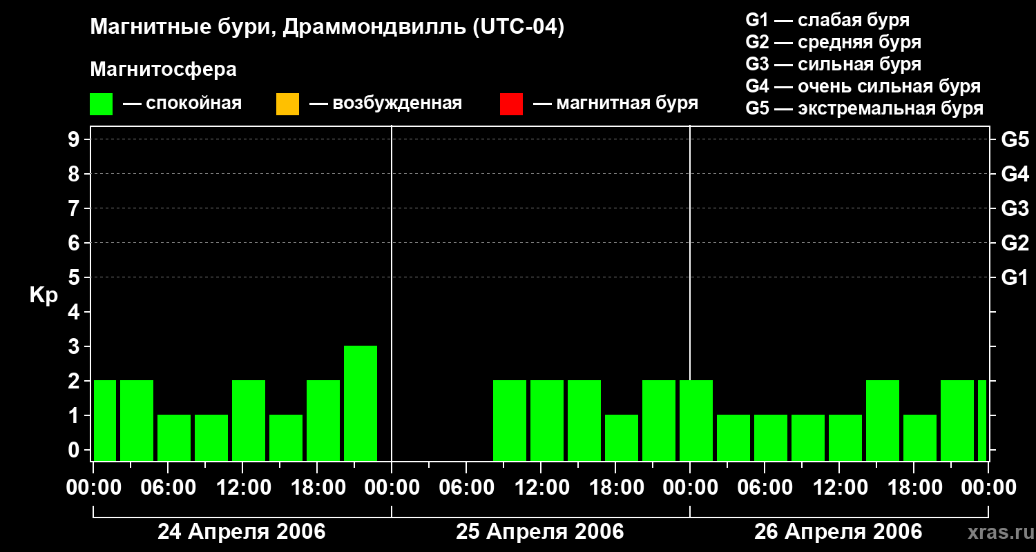 Магнитные бури в Драммондвилле 26 апреля 2006 года