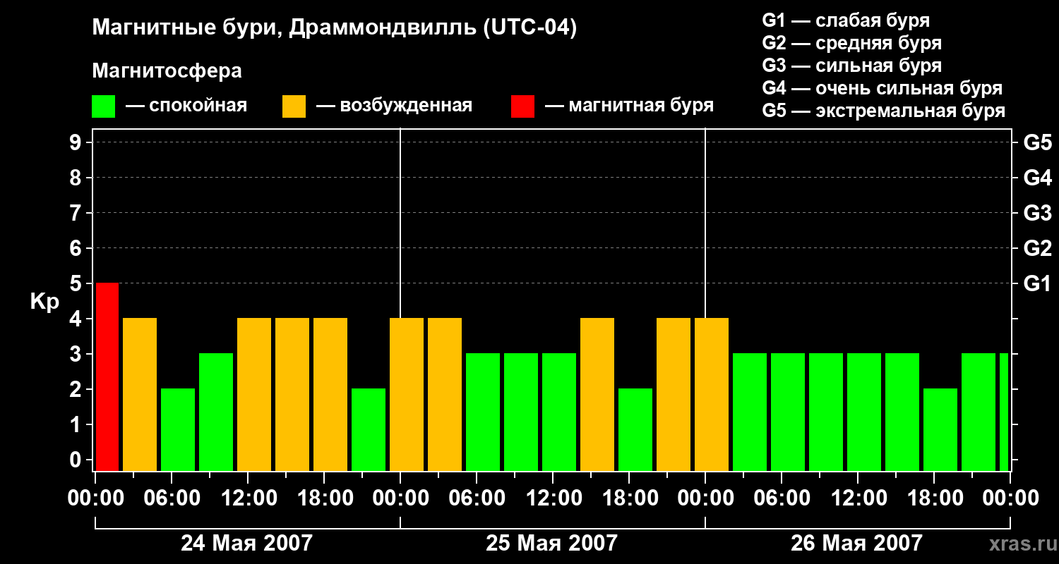 Магнитные бури в Драммондвилле 26 мая 2007 года