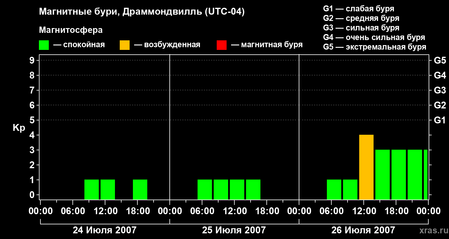 Магнитные бури в Драммондвилле 26 июля 2007 года