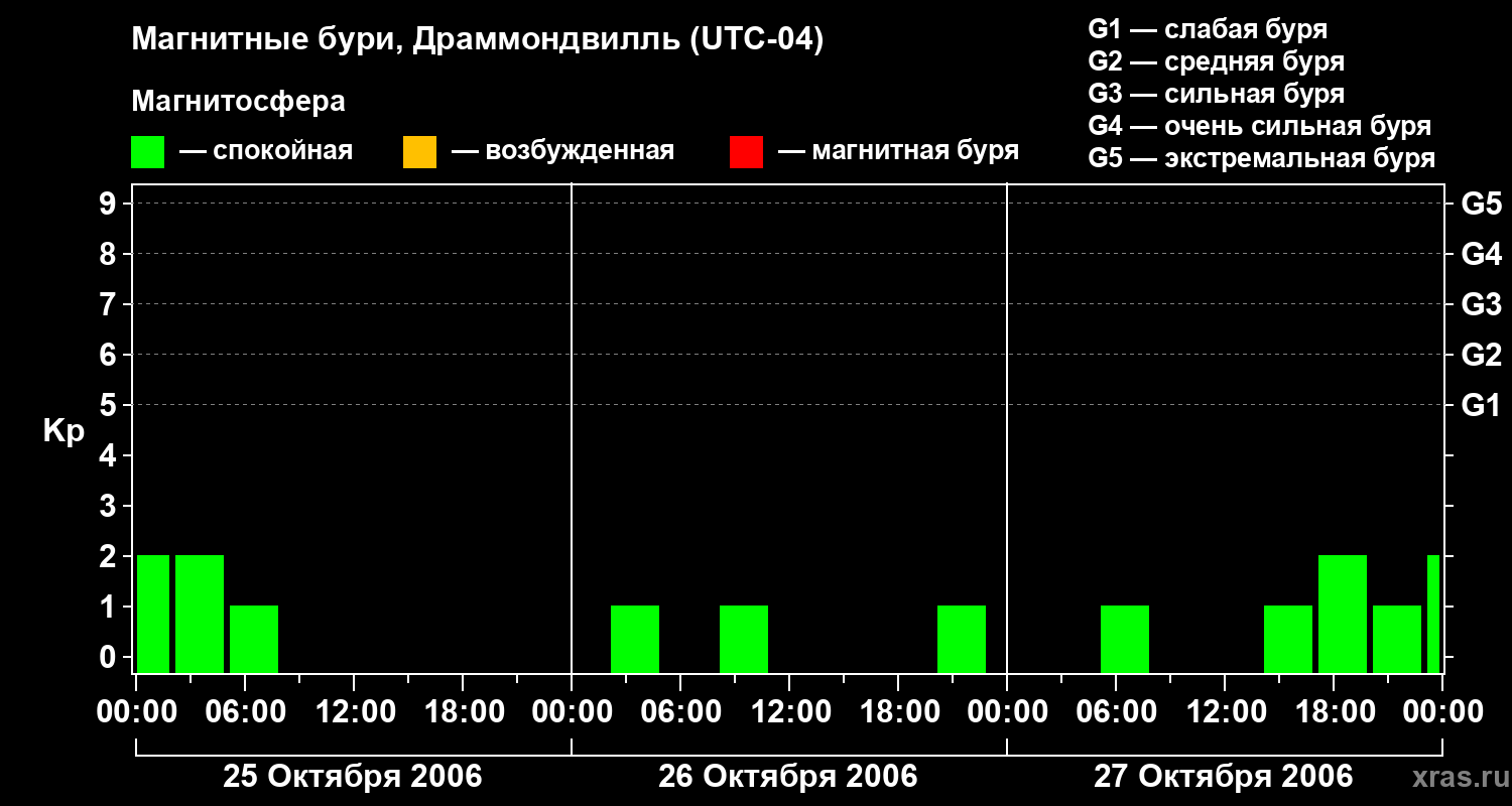 Магнитные бури в Драммондвилле 27 октября 2006 года