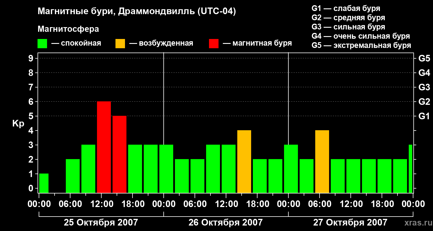 Магнитные бури в Драммондвилле 27 октября 2007 года