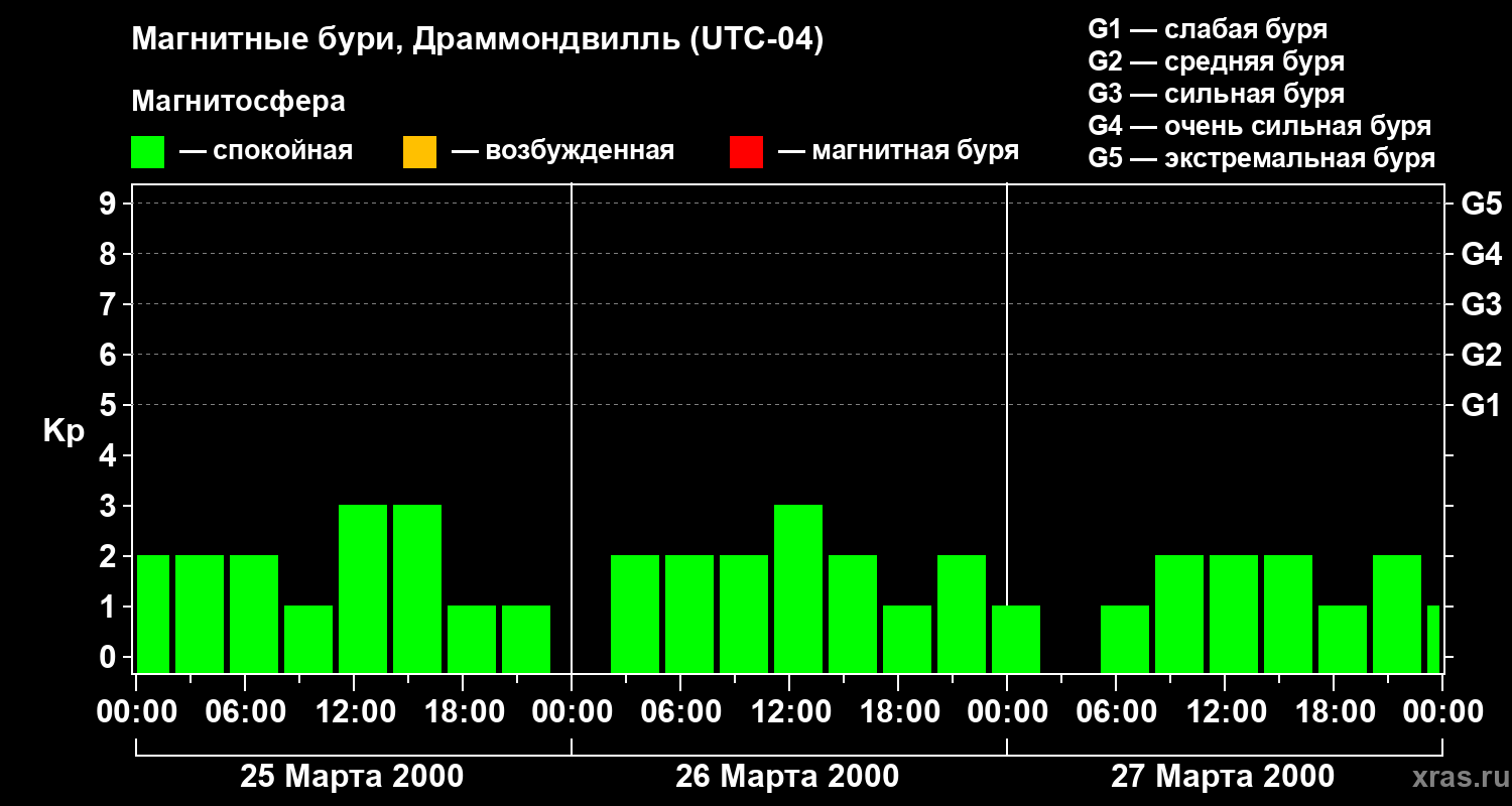 Магнитные бури в Драммондвилле 27 марта 2000 года