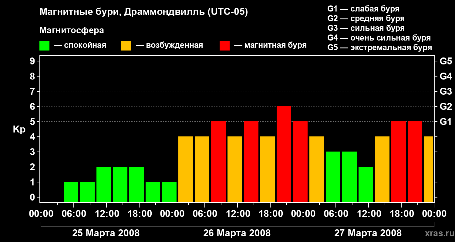 Магнитные бури в Драммондвилле — 27 марта 2008 года
