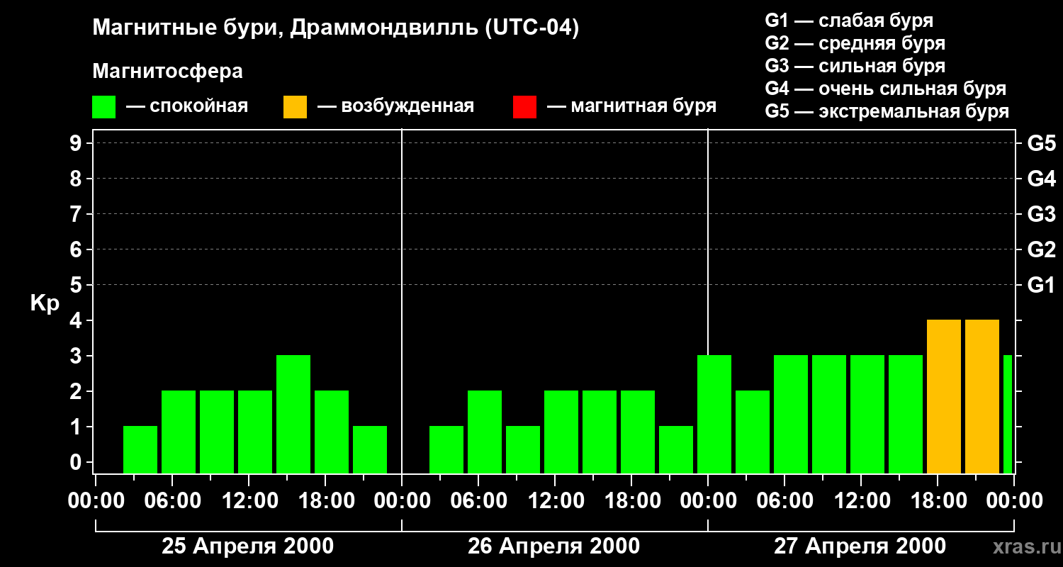 Магнитные бури в Драммондвилле 27 апреля 2000 года