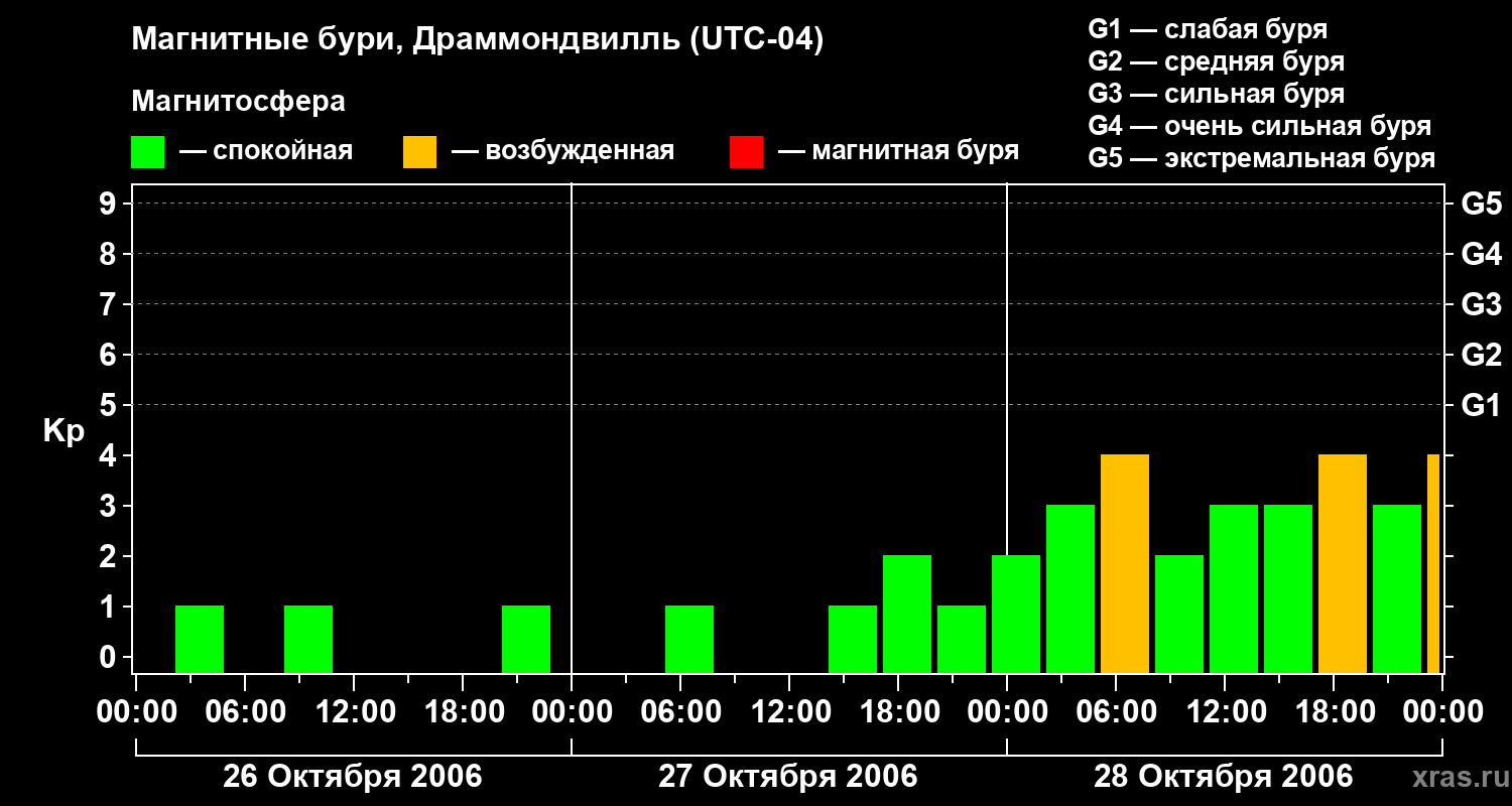 Магнитные бури в Драммондвилле 28 октября 2006 года
