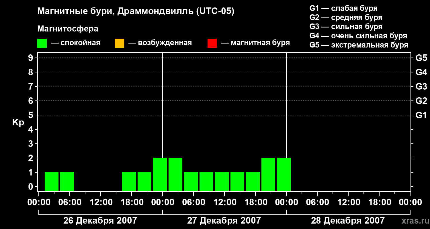 Магнитные бури в Драммондвилле — 28 декабря 2007 года