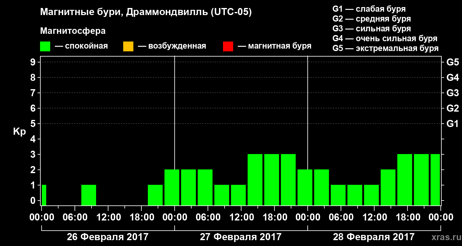Магнитные бури в Драммондвилле — 28 февраля 2017 года