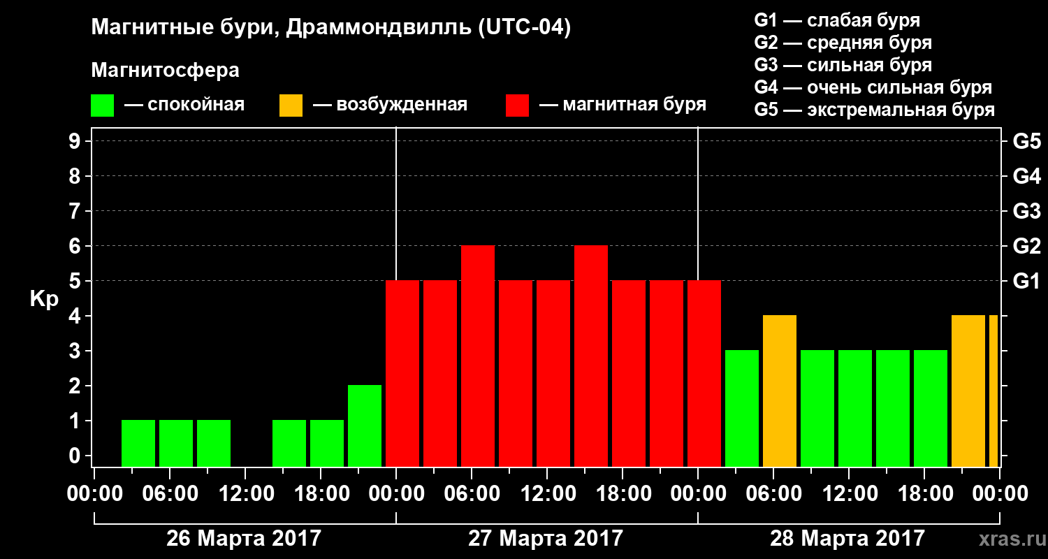 Магнитные бури в Драммондвилле 28 марта 2017 года