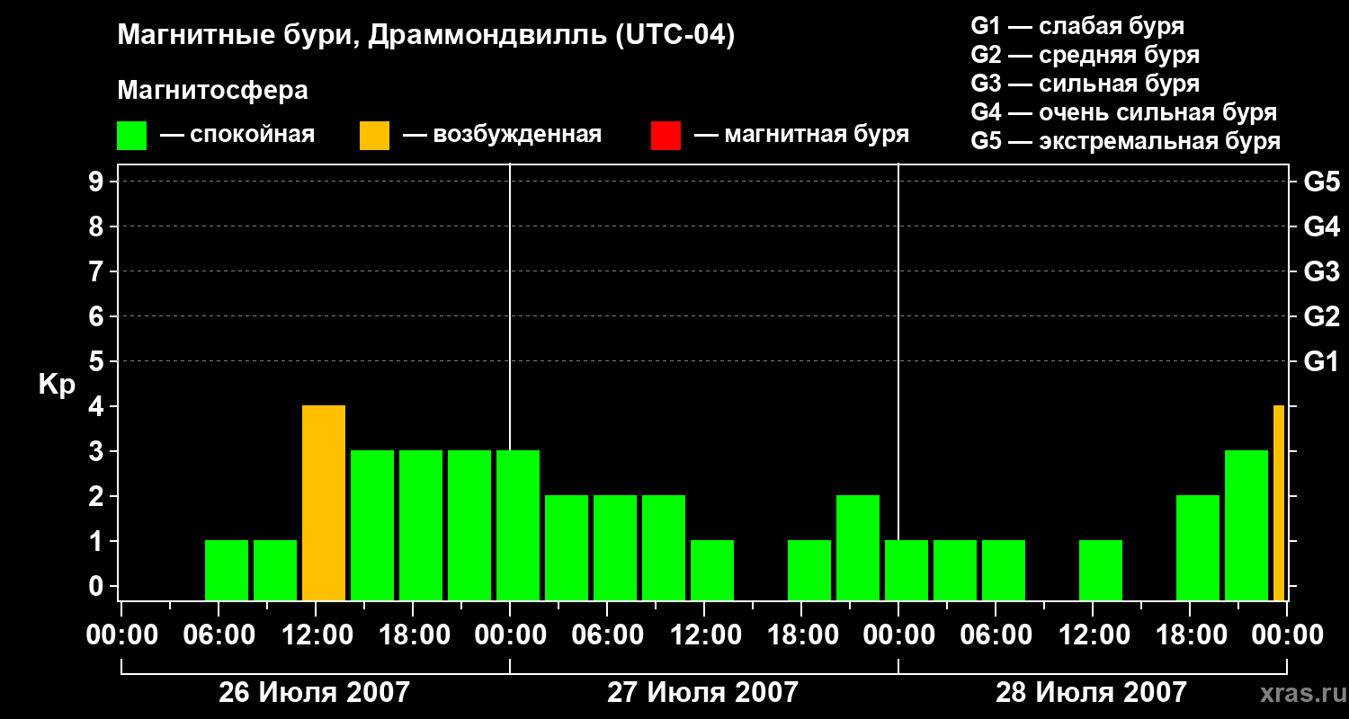 Магнитные бури в Драммондвилле 28 июля 2007 года