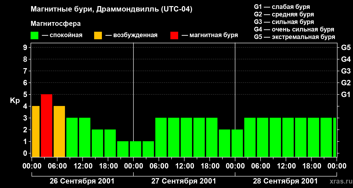 Магнитные бури в Драммондвилле 28 сентября 2001 года