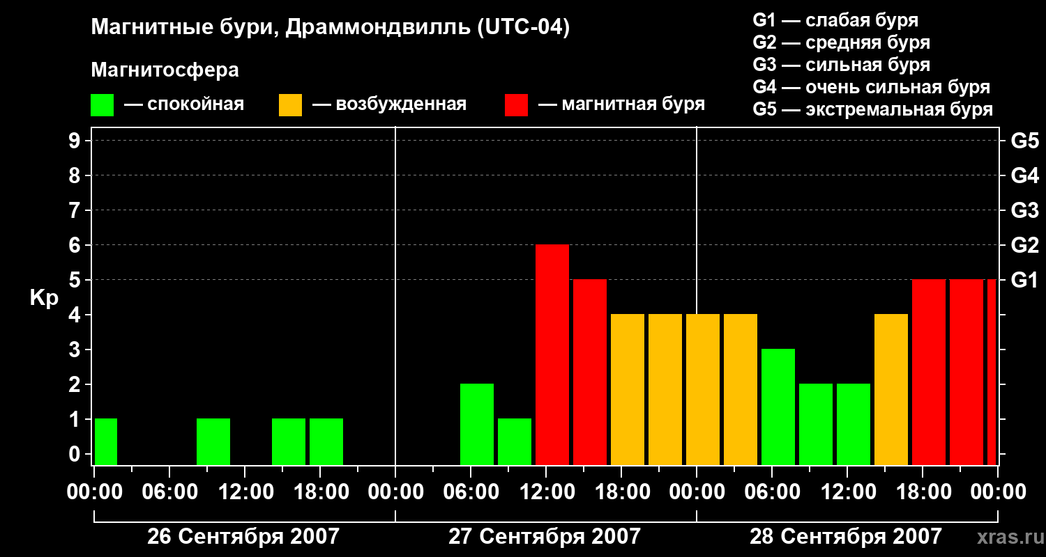 Магнитные бури в Драммондвилле 28 сентября 2007 года