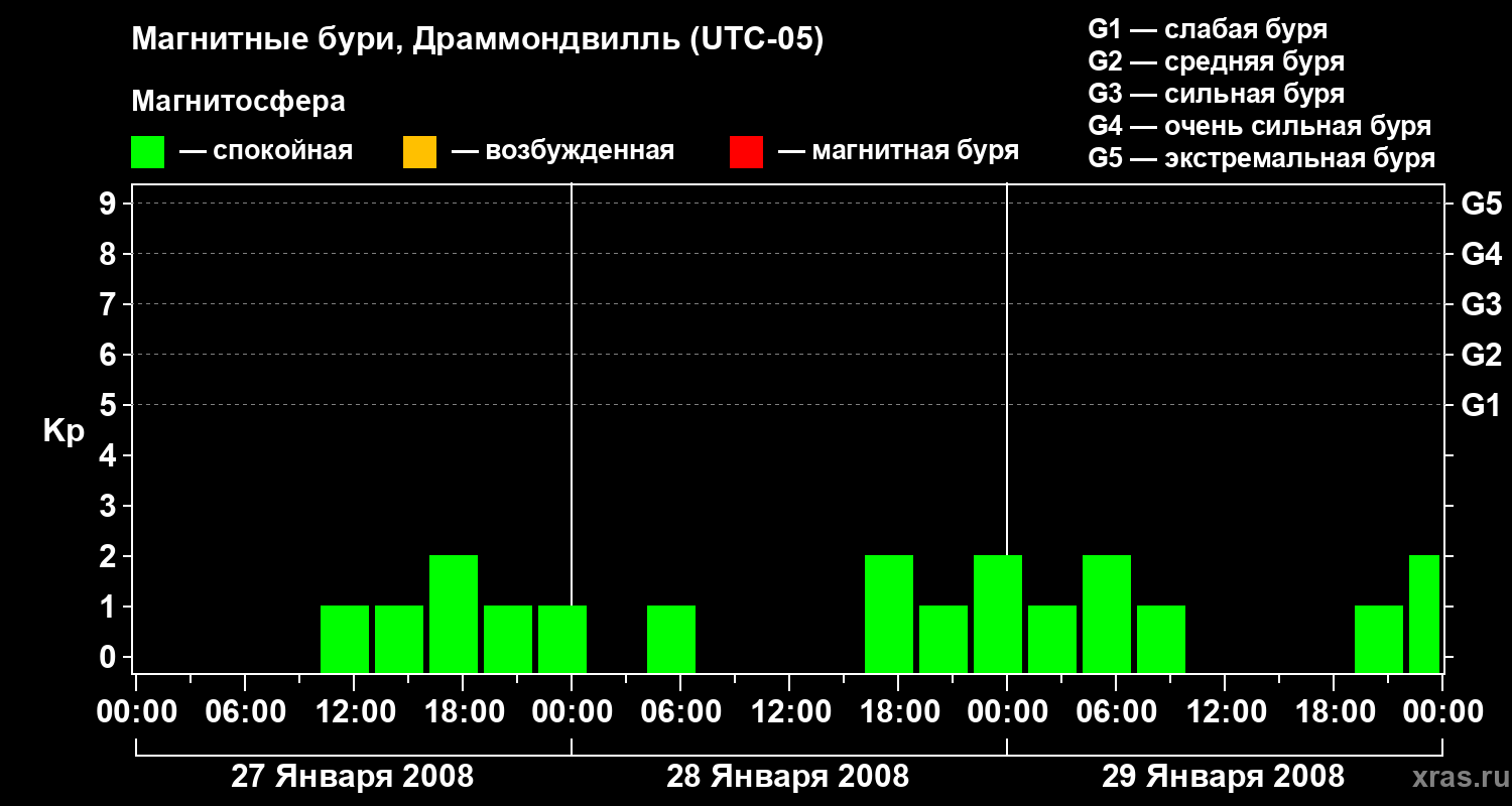 Магнитные бури в Драммондвилле 29 января 2008 года