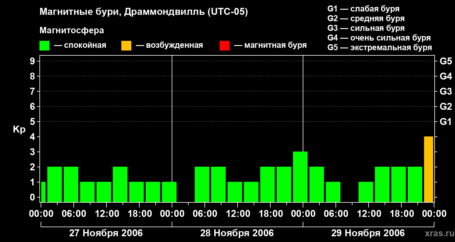 Магнитные бури в Драммондвилле 29 ноября 2006 года