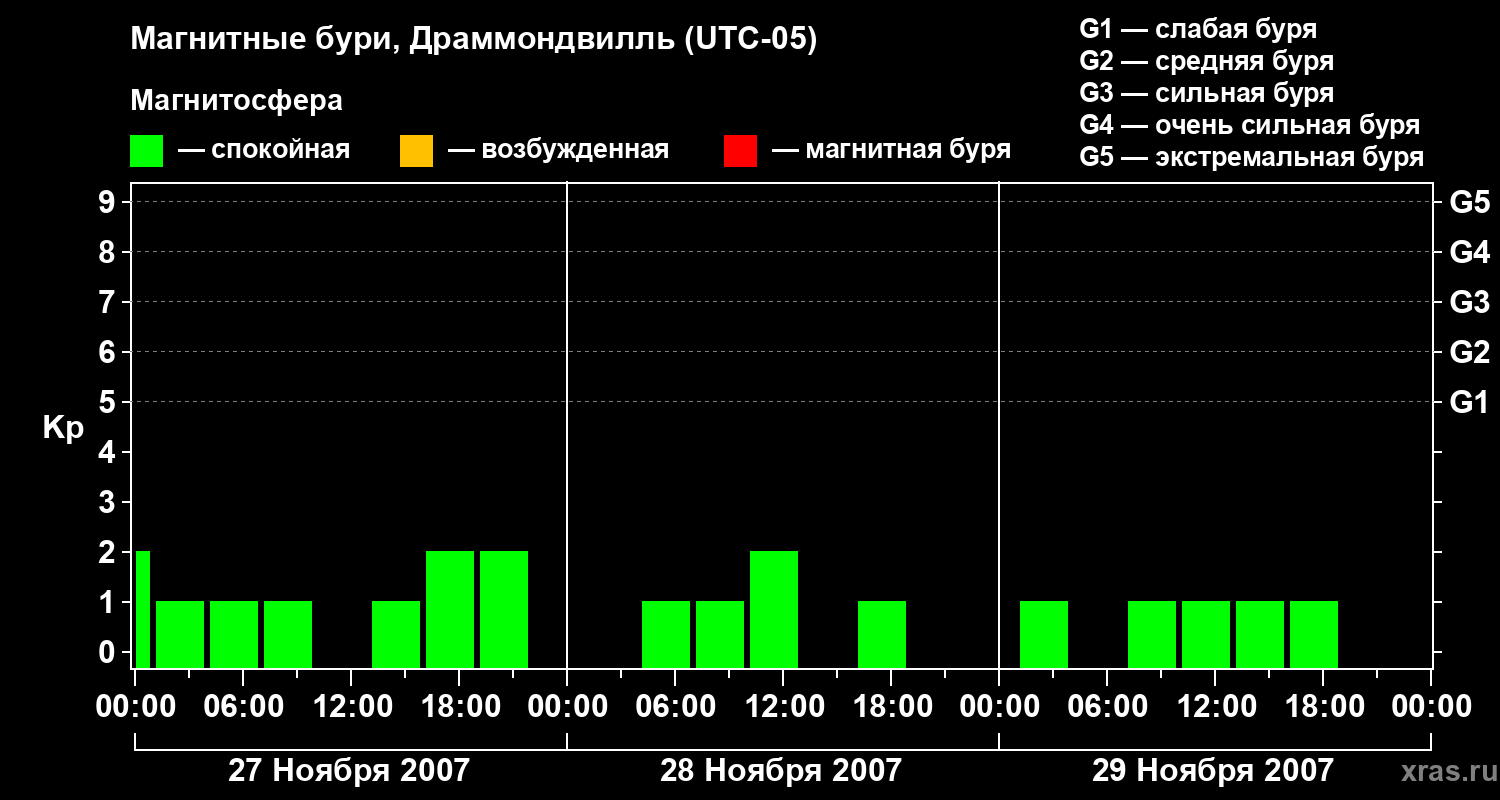 Магнитные бури в Драммондвилле 29 ноября 2007 года