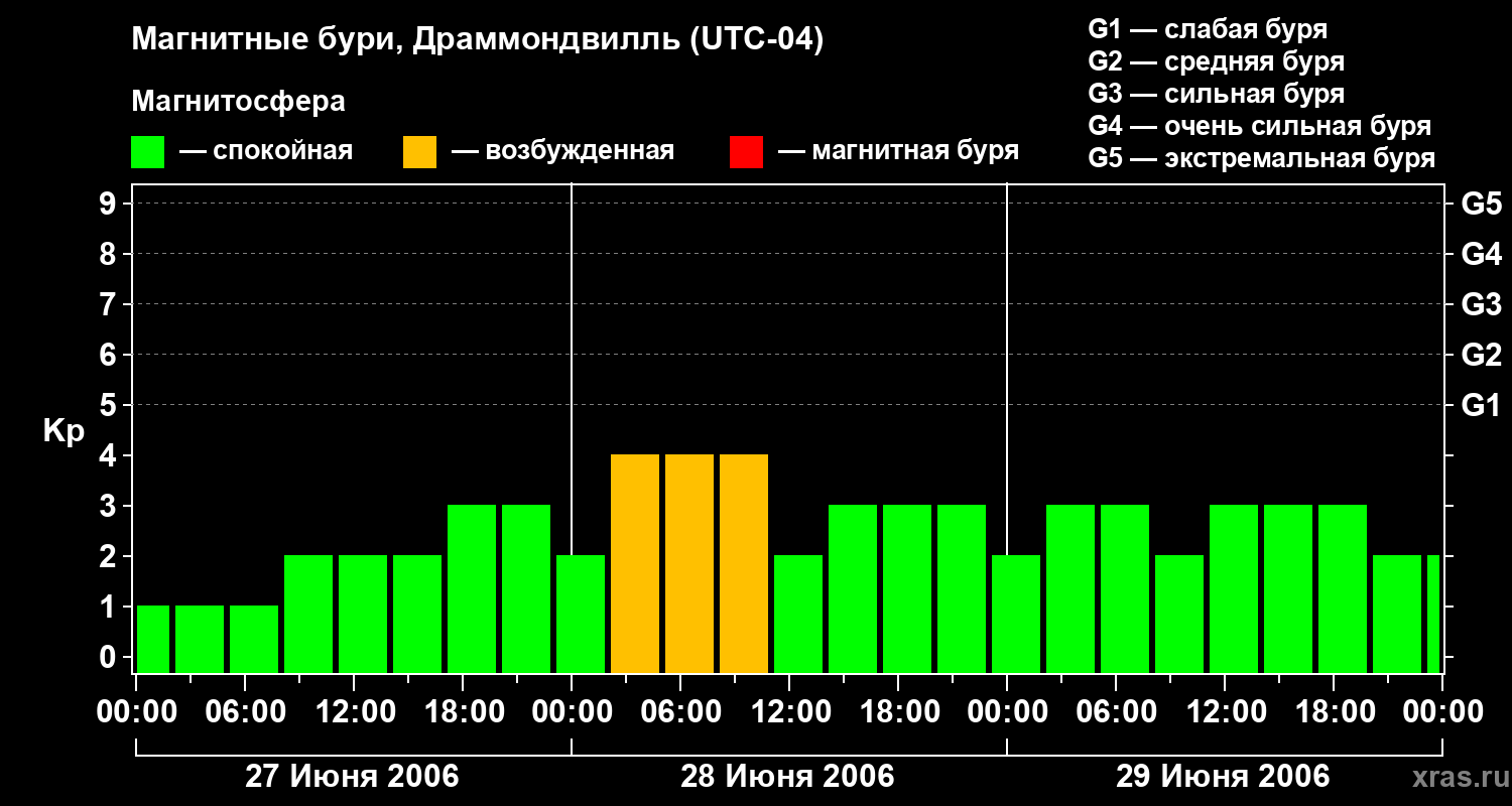 Магнитные бури в Драммондвилле 29 июня 2006 года