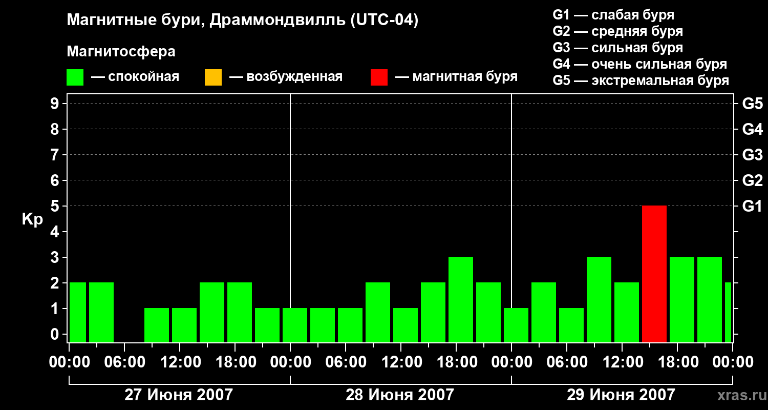Магнитные бури в Драммондвилле 29 июня 2007 года