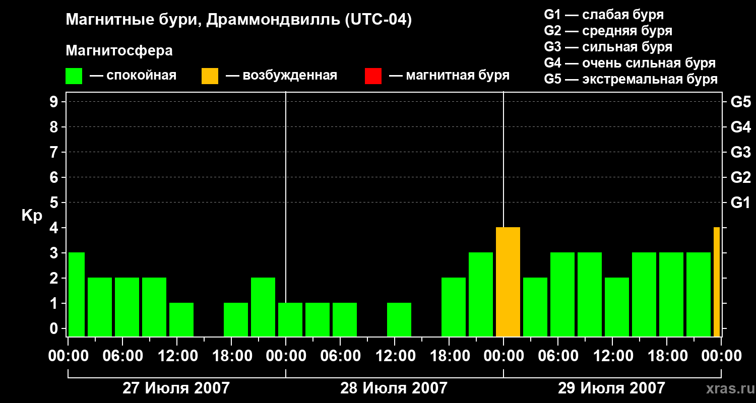 Магнитные бури в Драммондвилле 29 июля 2007 года