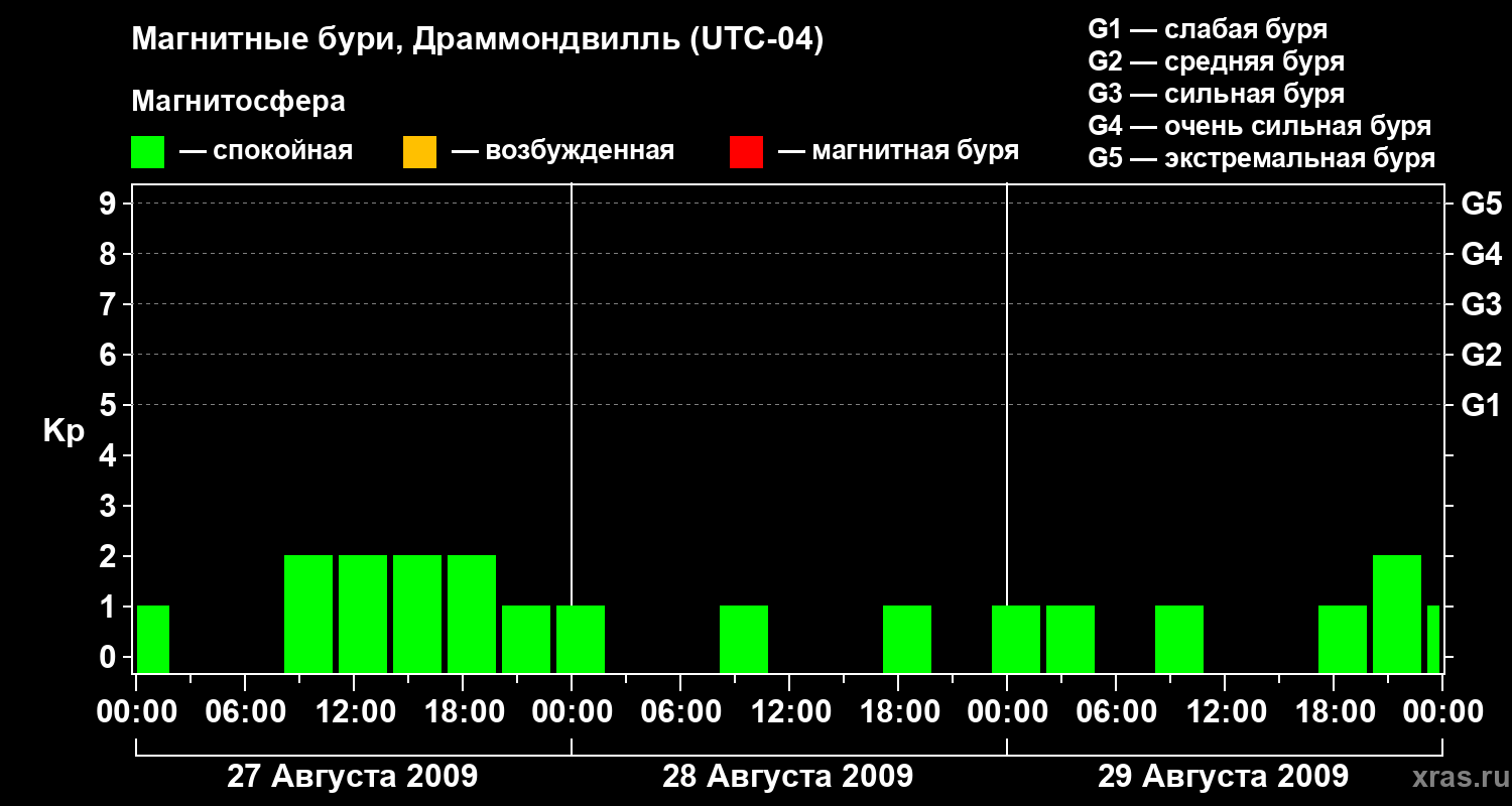 Магнитные бури в Драммондвилле 29 августа 2009 года