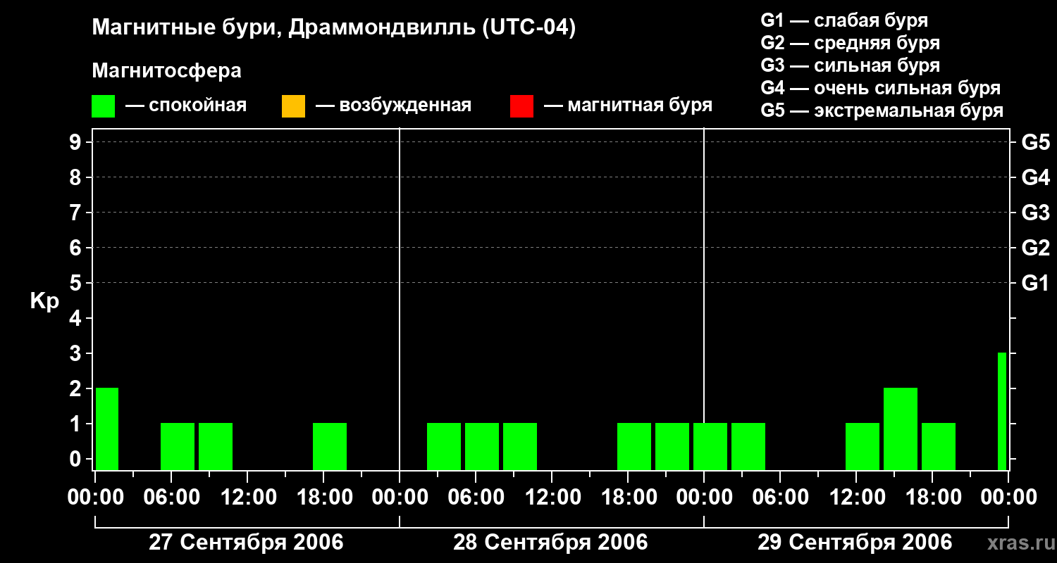 Магнитные бури в Драммондвилле 29 сентября 2006 года