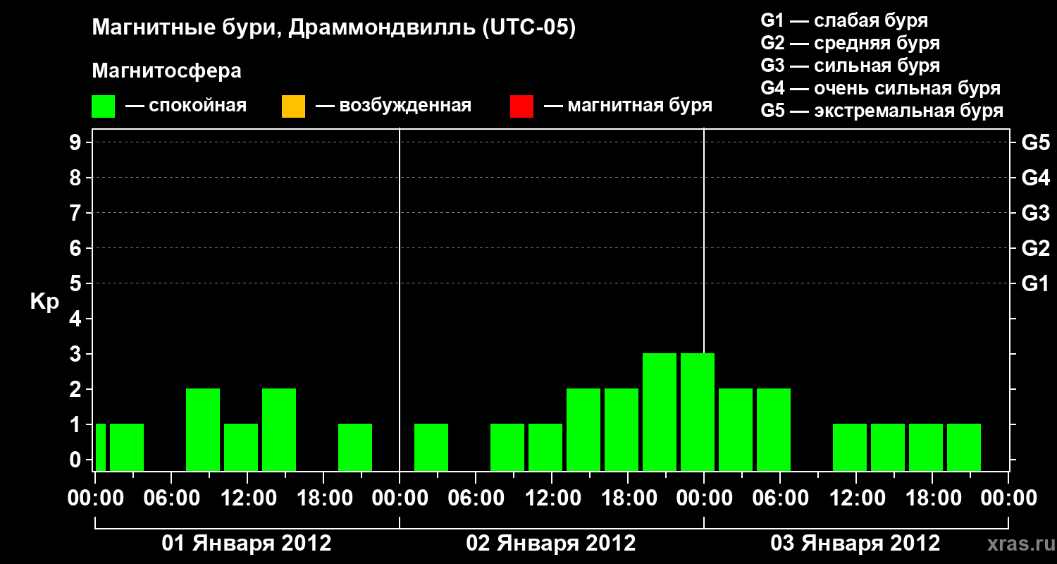 Магнитные бури в Драммондвилле 3 января 2012 года
